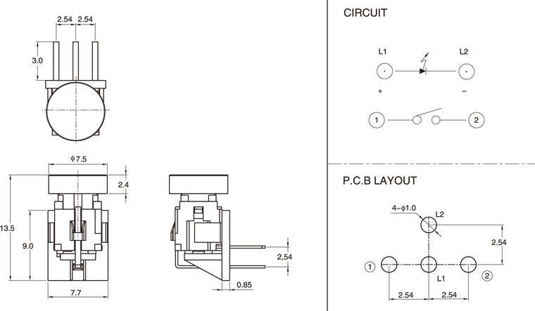 您现在的位置:首页 >> 产品中心 > 带灯轻触开关-Illuminated Tact Switch > PB01-203RL(With LED) PB01-203R