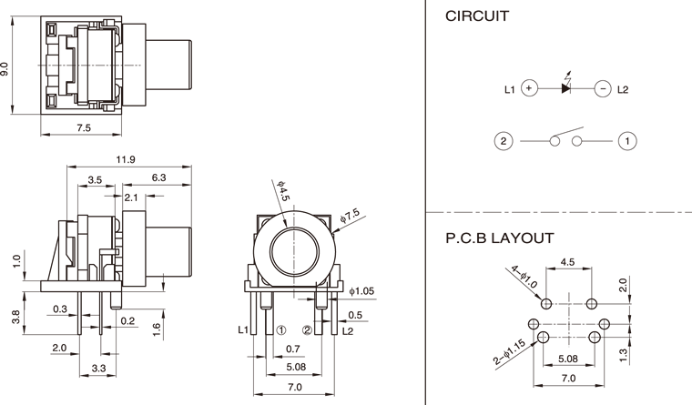 您现在的位置:首页 >> 产品中心 > 带灯轻触开关-Illuminated Tact Switch > PB02-21RWL(25)(With LED)